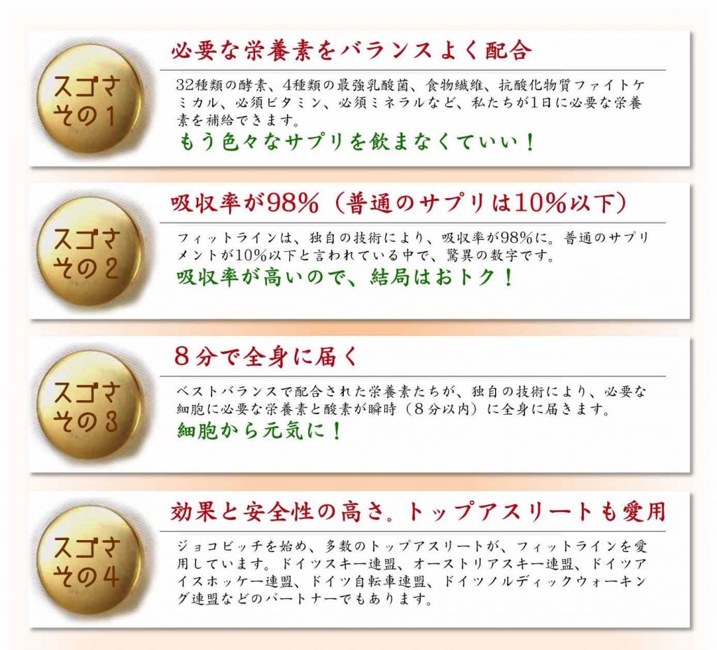 その他にもフィットラインは、ドイツスキー連盟・アイスホッケー連盟・自転車連盟、オーストリアスキー連盟、スイスハンドボール連盟等、トップアスリートが契約していること、ケルンリストによってドーピングフリー(飲んでもドーピングにはならない)と認められていることなども、その効果と安全性を証明しているのではないでしょうか。